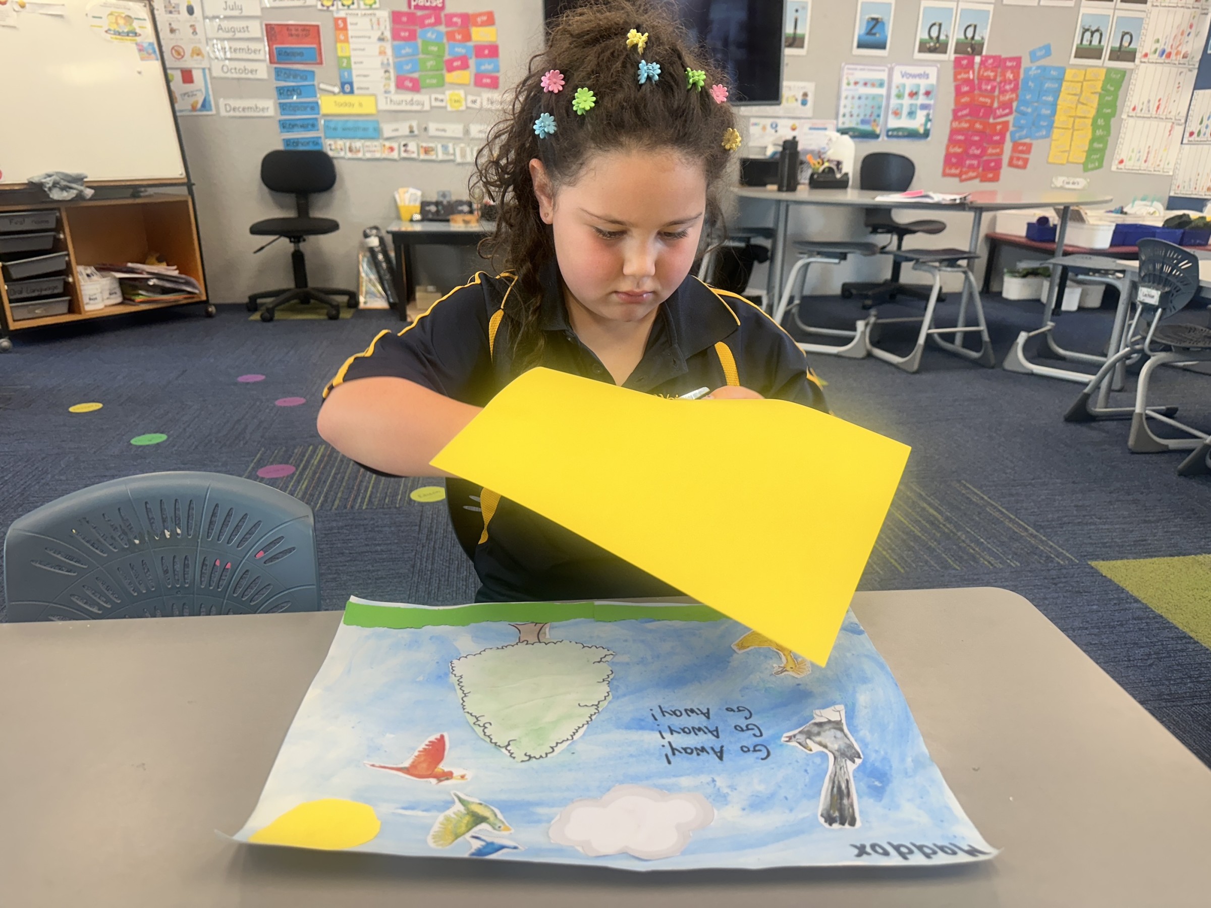 Students shared their own ideas, learning and reflections along the way. “The illustrator is the person who draws the pictures for the story,” explained Sophia, showing her growing awareness of how books are created. “My favourite character is the Chit-Chat Bird!” shared Miley, showing her engagement and connection to the characters in the story.