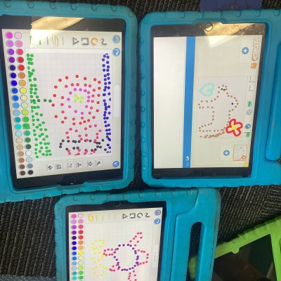 As a part of Making a Mark, we are learning that a mark can represent something meaningful. During discussions about dot art, students shared that they would like to explore and explain their stories through dot art. First, they practised the dot art on a whiteboard and then on Scratch Jr to build confidence and prepare for their final piece. The inspiration for final designs came from personal experiences and the understanding that every mark, or dot, can tell a part of their story, reflecting thoughts, emotions, and individuality.