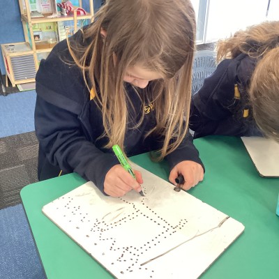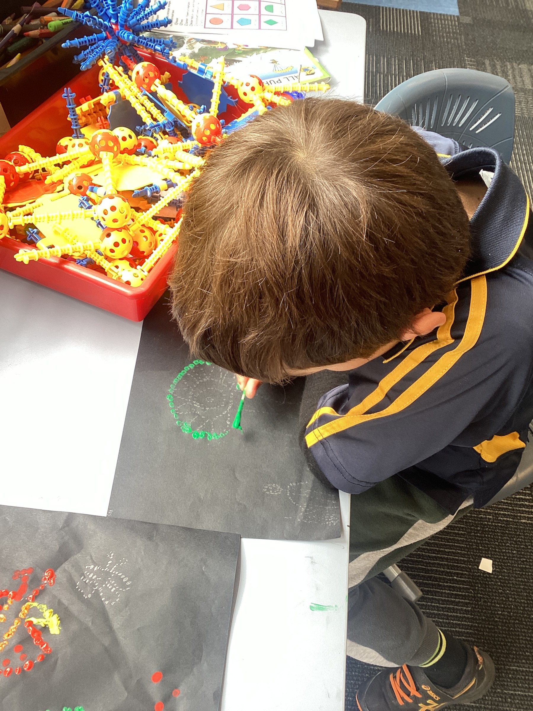 This learning is connected with maths, where students have been exploring patterns. Tamariki recognised repeating designs and symmetry in dot paintings, helping them understand how patterns appear in both art and maths.