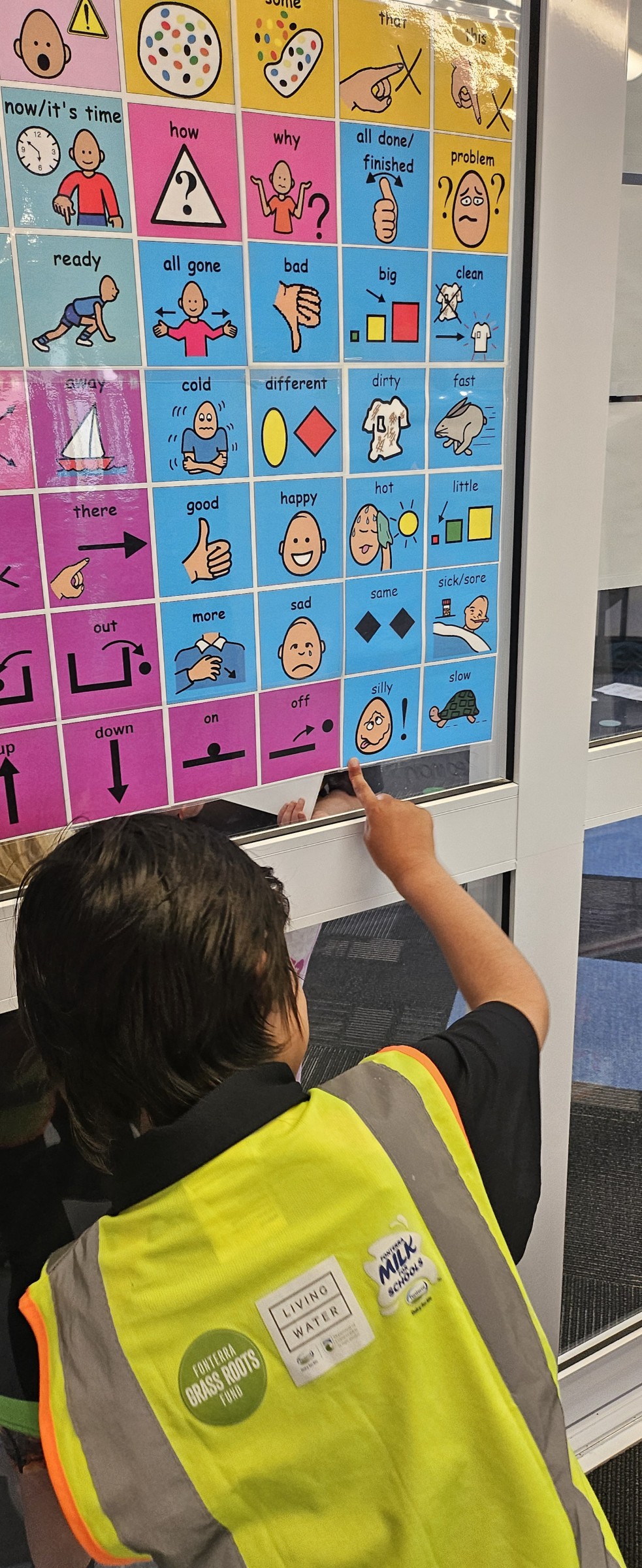 The more teachers and teacher aides model the coreboard, the more Muskaan engages. She is now initiating communication on her own, particularly when something captures her attention. Children with autism often have a special interest - something they show intense focus or fascination with. Muskaan’s current special interest is trees, and she has a bespoke strip of fringe words to reflect this.