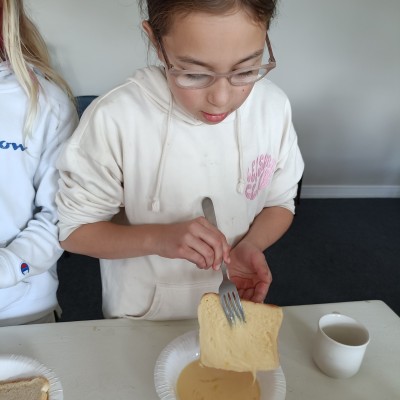 Making lunch for everyone was so cool. I loved being in charge of the French toast — you have to wait for just the right moment to flip it, and when you nail it, it's so satisfying. Watching everyone eat something I made was the best feeling!