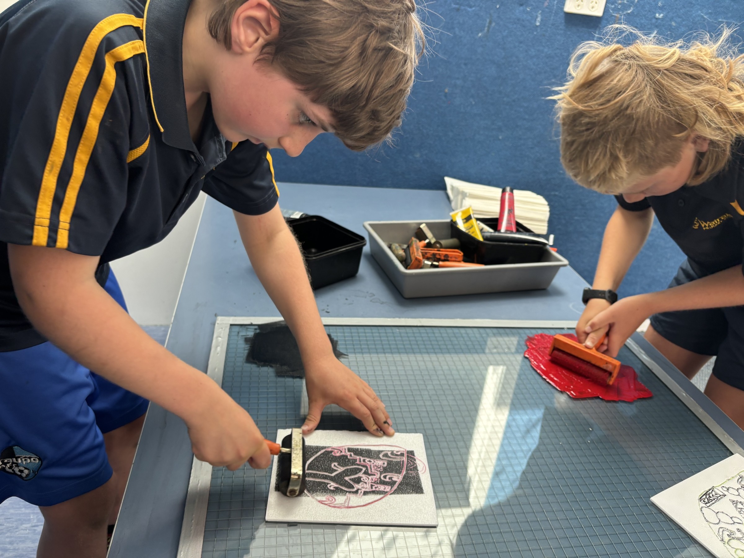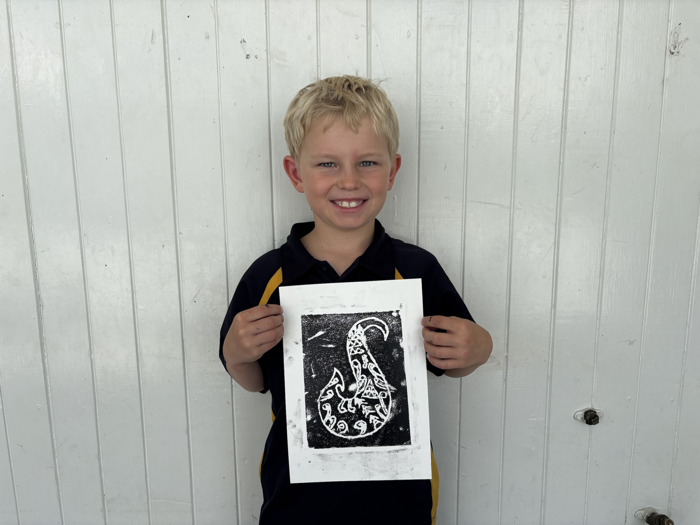 In class, students explored this sacred art by creating foam-carved prints to honour someone special in their whānau. They began by learning that tā moko is much more than decoration. Every line and symbol carries meaning, reflecting the person’s story and identity. Through videos and examples, students saw how tā moko connects Māori to their tūpuna and discovered how different symbols can represent feelings, experiences, or the qualities of a person.