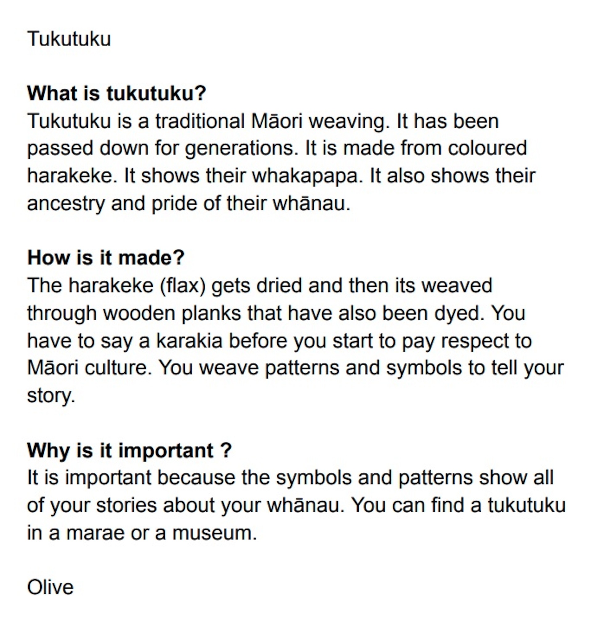 The final explanations show how students are growing as writers who use words to express ideas clearly and respectfully. Through exploring Māori art, they also discovered that language carries culture and meaning. By choosing words carefully, especially te reo Māori vocabulary, students found ways to write that honoured both the art and the stories behind it.