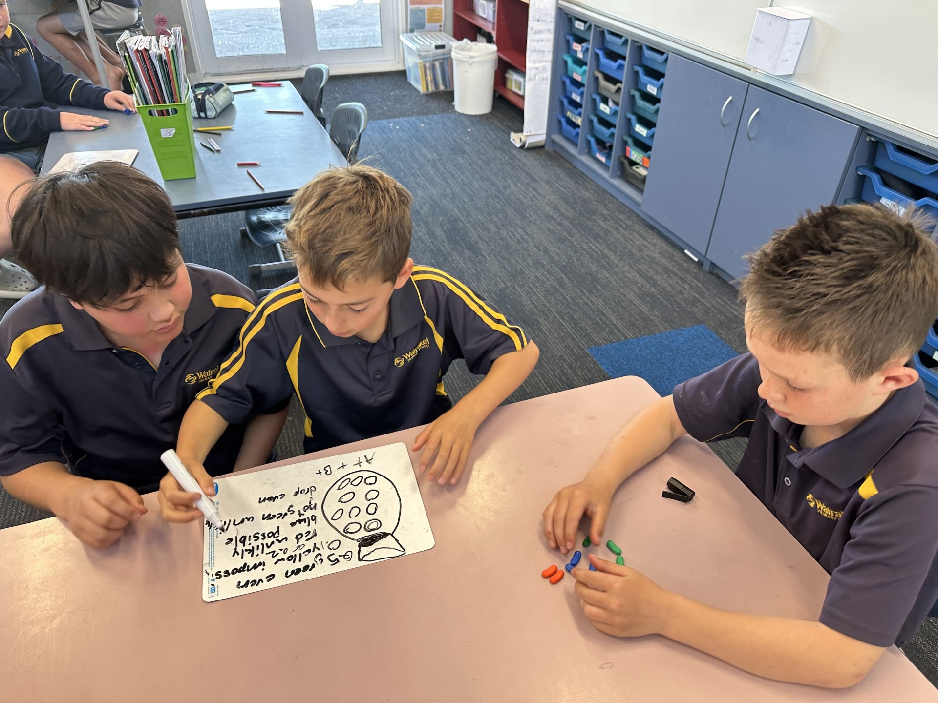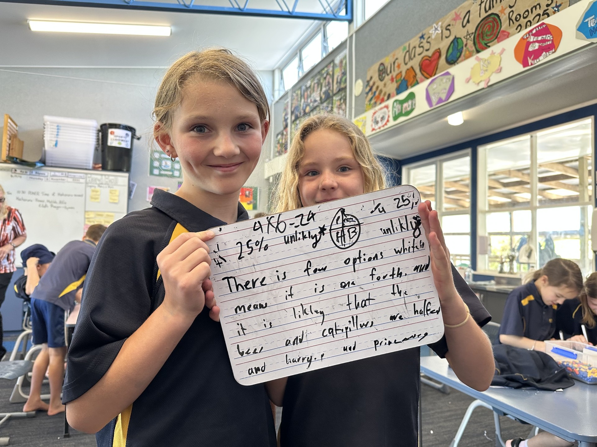 Room 3 students have been exploring probability and chance through an adapted Open Ended Task from The Learner First. Open Ended Tasks are designed to challenge students’ thinking and encourage them to explore multiple possibilities rather than search for one single “right” answer. They promote reasoning, discussion, and reflection, helping students develop deeper understanding of mathematical concepts.
