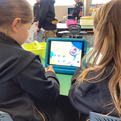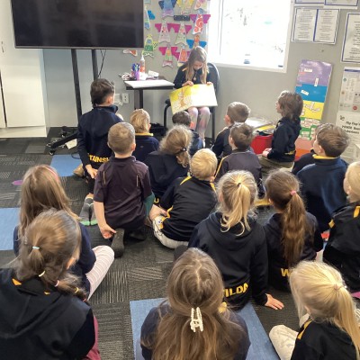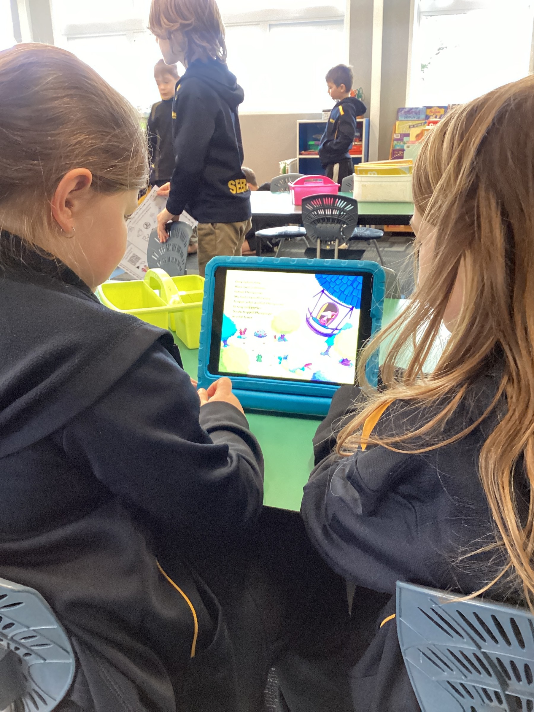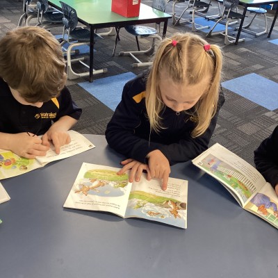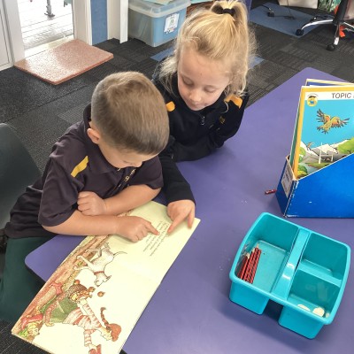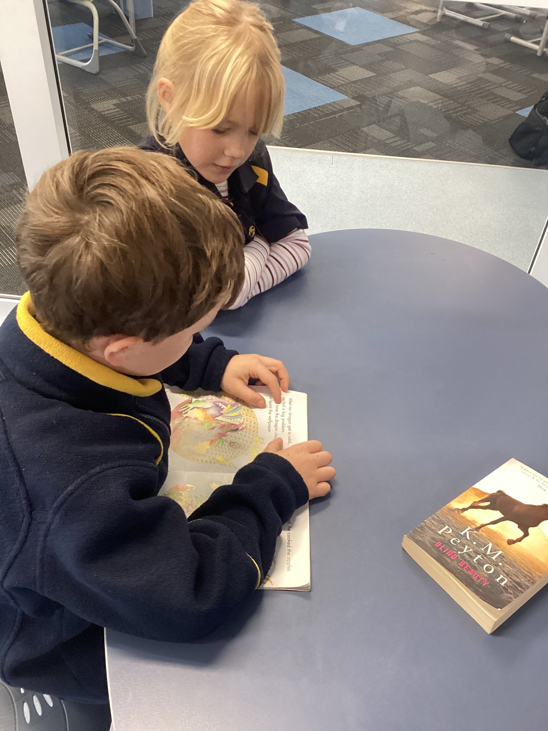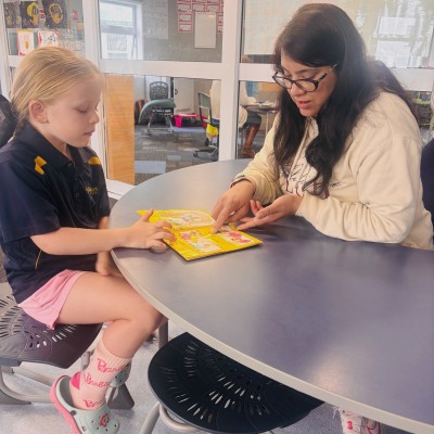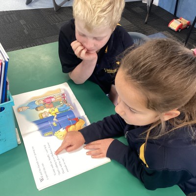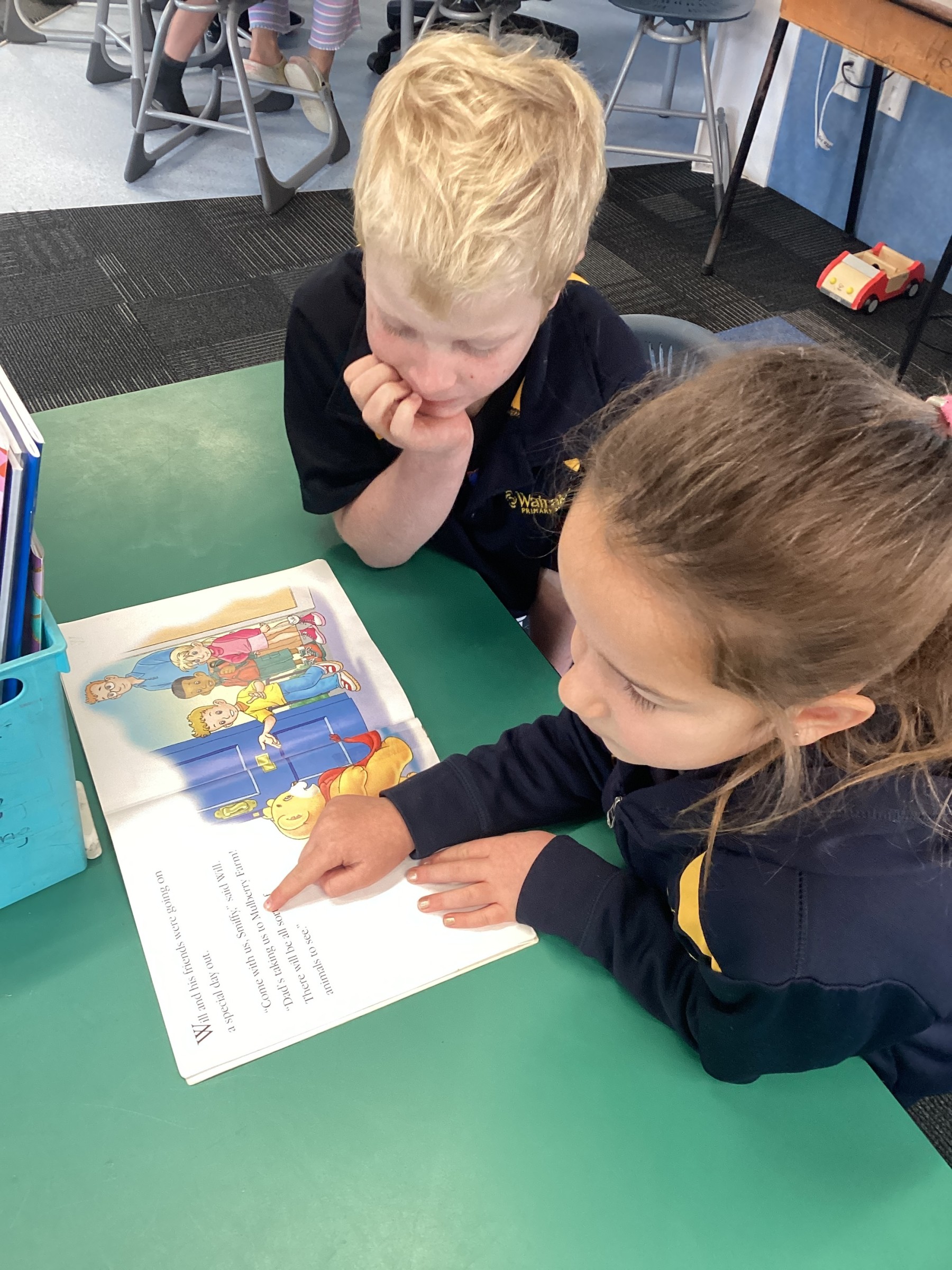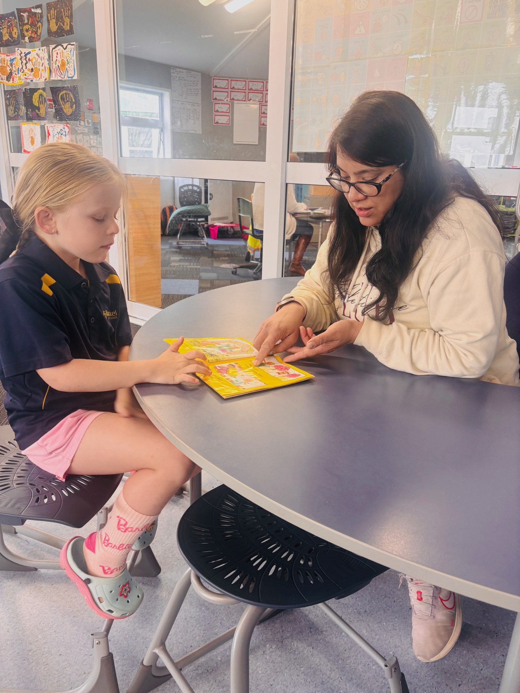 After morning tea, students take part in buddy reading,” where they work with a partner to read together. They take turns reading, and if they find a word they cannot read, they try to decode the word together using their knowledge of sounds. This encourages peer support and keeps students motivated. After lunch, students enjoy 10 minutes of silent reading, which helps build independence and aims to strengthen their love of books. By giving students the opportunity to select books they are interested in and a chance to build fluency and stamina, their positive association with reading continues outside of the classroom.
