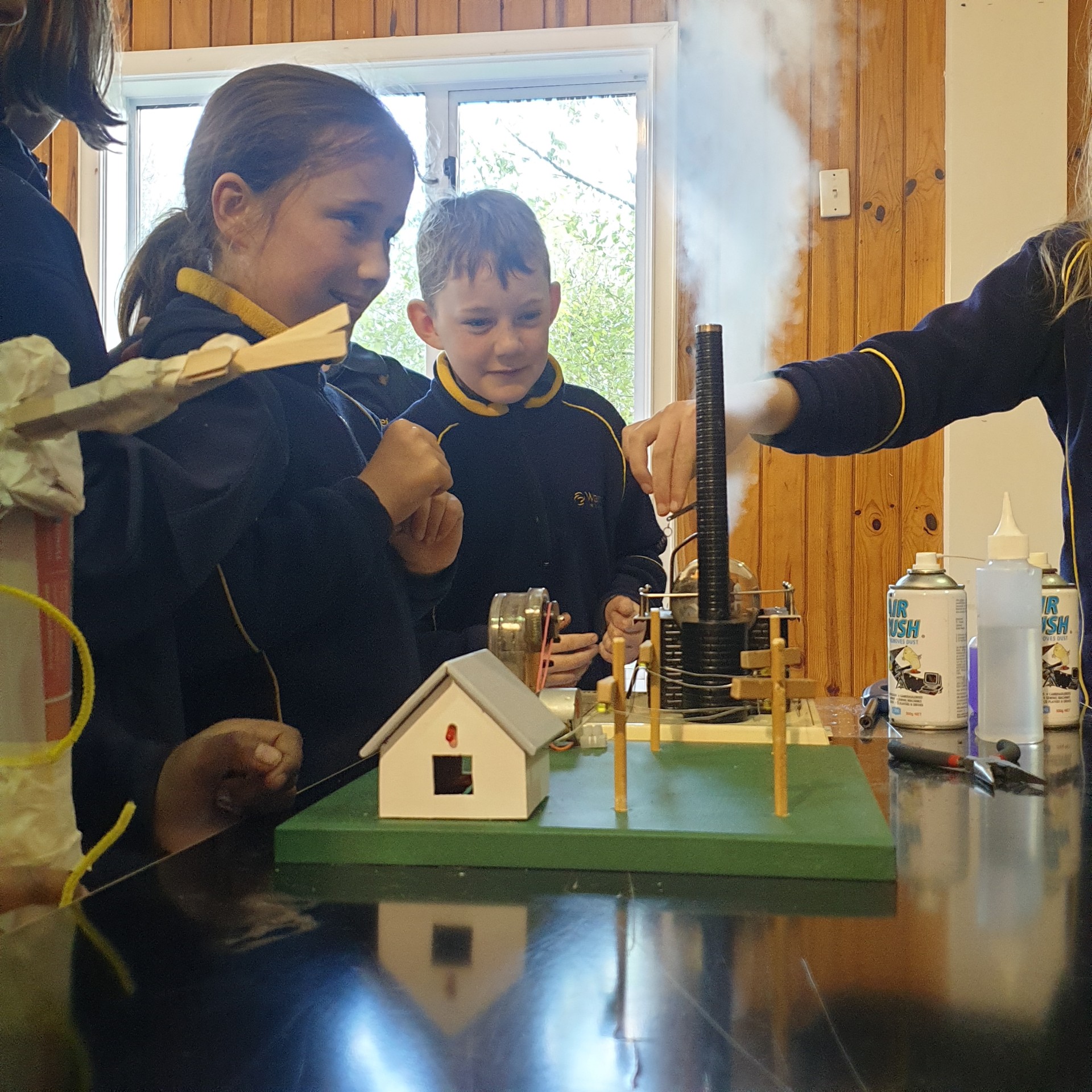 Students explored how steam turns the turbines, using a steam-powered engine as the model.