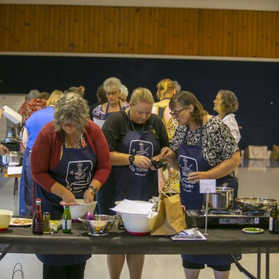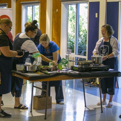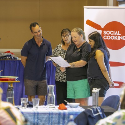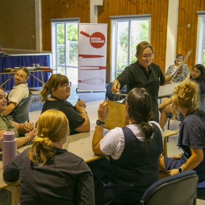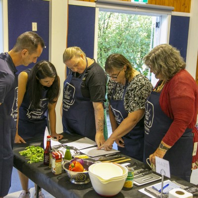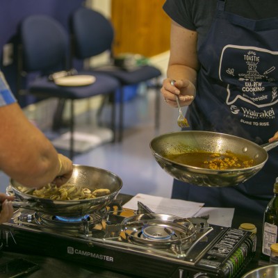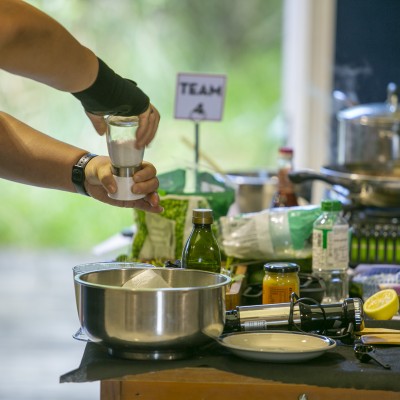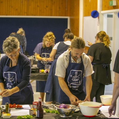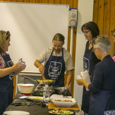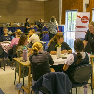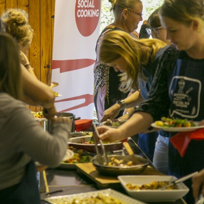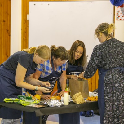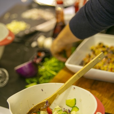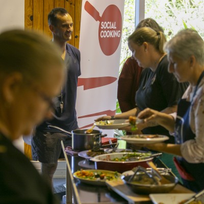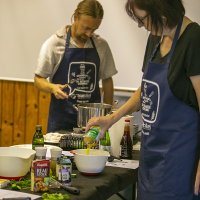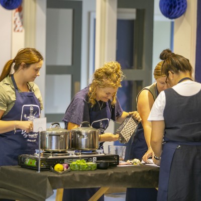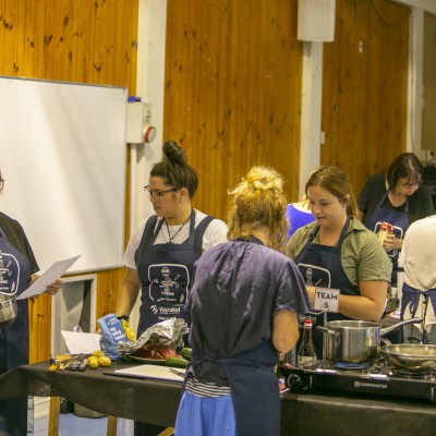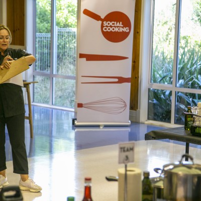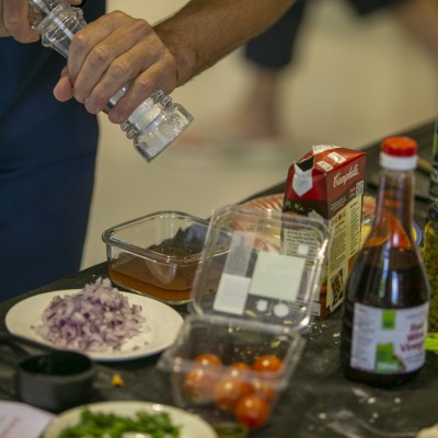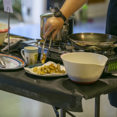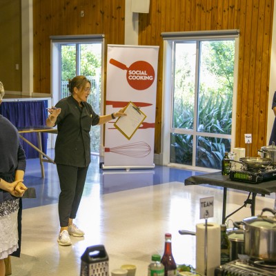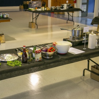 Social cooking had set up the challenge in the hall providing all the cooking equipment and the food to be used during the session.