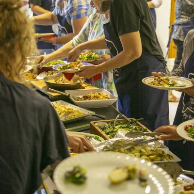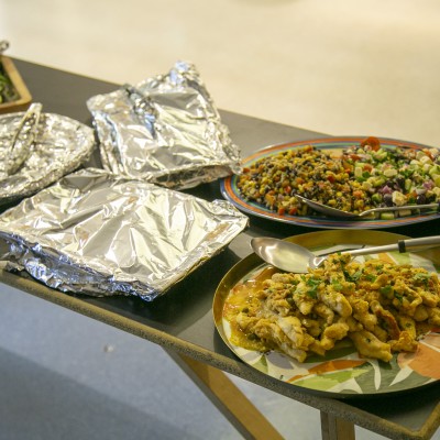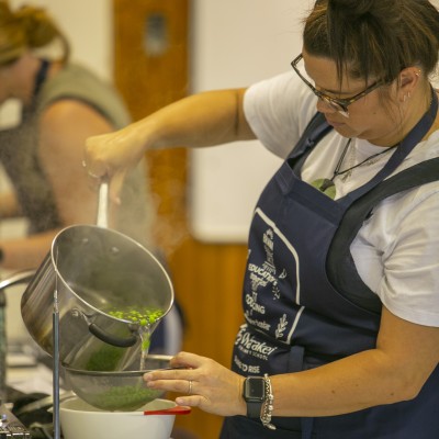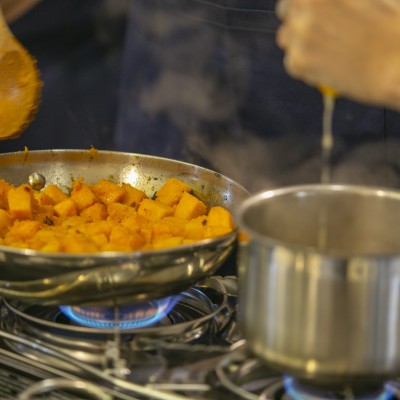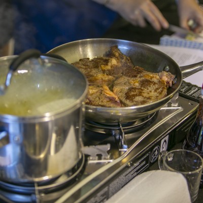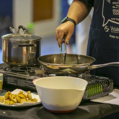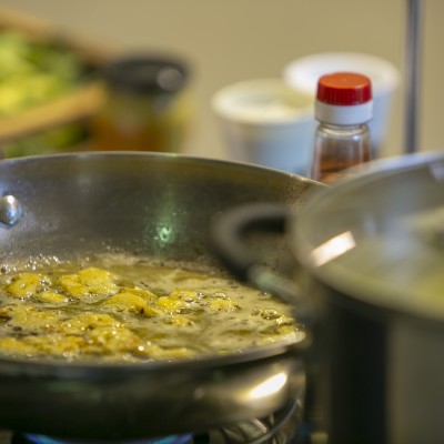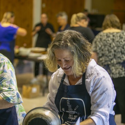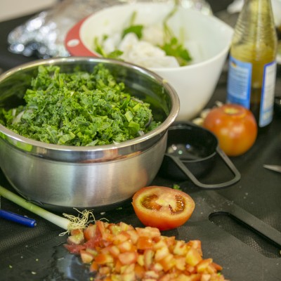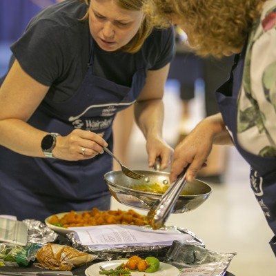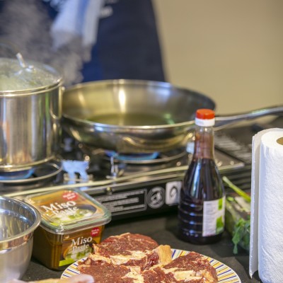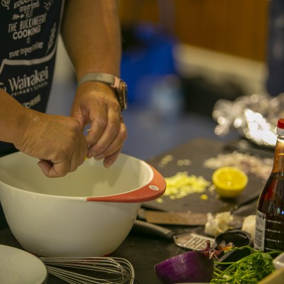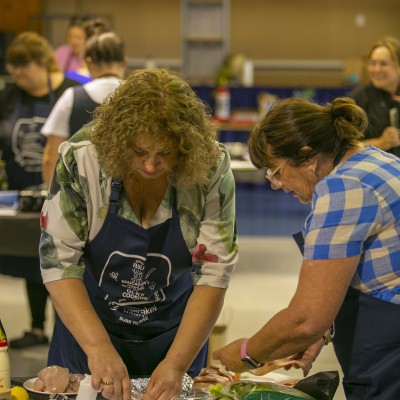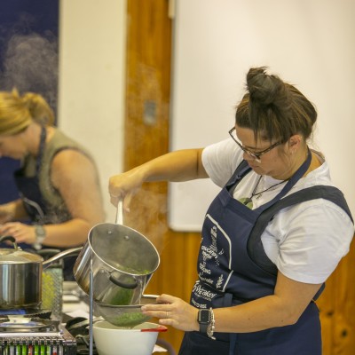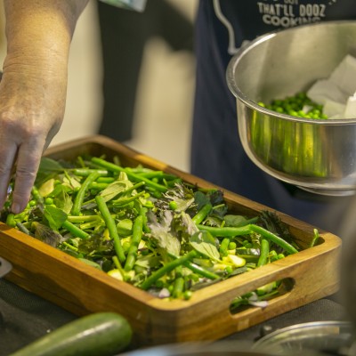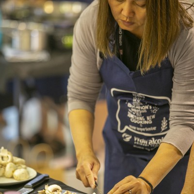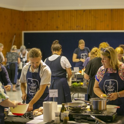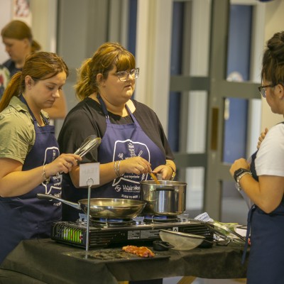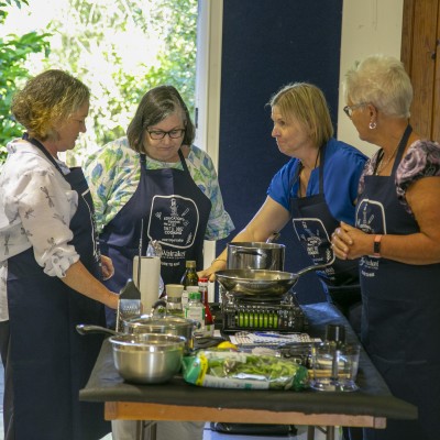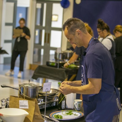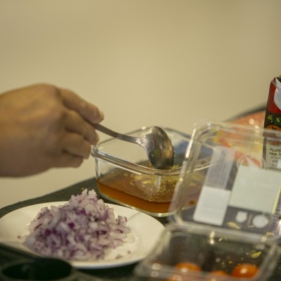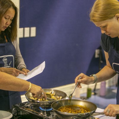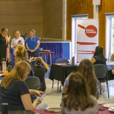 Social cooking had set up the challenge in the hall providing all the cooking equipment and the food to be used during the session.