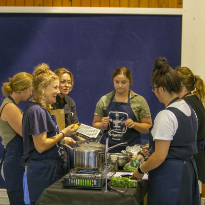 One hour to complete the cooking of three dishes and develop a skit or oral presentation where everyone had to be involved.